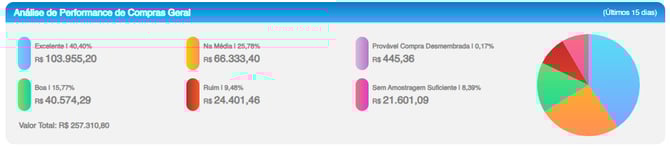 Este painel é um boletim de desempenho de compras, mostrando a qualidade das negociações que você realizou com cada fornecedor nos últimos 15 dias. O objetivo é orientar suas futuras negociações e pedidos.